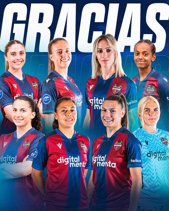Paula Fernández, Ángela Sosa, Estela Carbonell, Emma Holmgren, María Molina, Madeline Gravante, Michaela Workou y Cameron Tucker se despiden del Levante UD 21 de mayo de 2025
