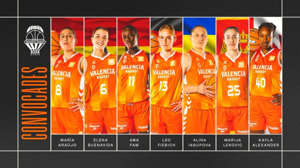 Valencia Basket tiene a un total de siete jugadoras participando con sus selecciones en la ventana FIBA de noviembre y empiezan a competir a desde hoy. María Araújo, Awa Fam y Elena Buenavida están con España, Alina Iagupova con Ucrania, Marija Lekovic con Montenegro, Leo Fiebich con Alemania y Kayla Alexander con Canadá. Además, mención especial a las jugadoras cedidas Alicia Flórez y Mojca Jelenc, que se encuentran con España y Eslovenia, respectivamente.